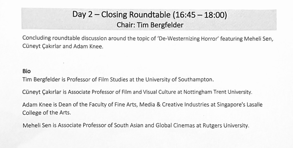 De-Westernizing Horror Cinema, an academic conference hosted by King’s College London on the 31/10/2022 and 1/11/2022.