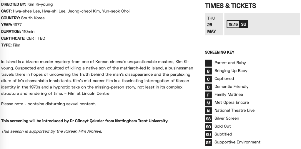 Çakırlar will introduce the screening of Ioedo (1977) – one of the important films that has inspired Çakırlar’s anti-canonising ambition to frame the “folk horror revival” in international/transnational settings.